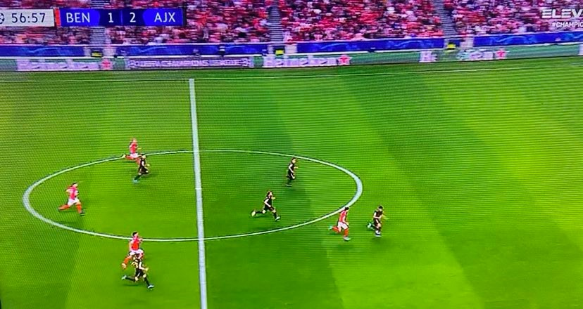 Havia 4 elementos do Ajax para trás e fora do lance mas tudo acaba em 3 para 1 que nem Messi nos seus melhores dias conseguia resolver.